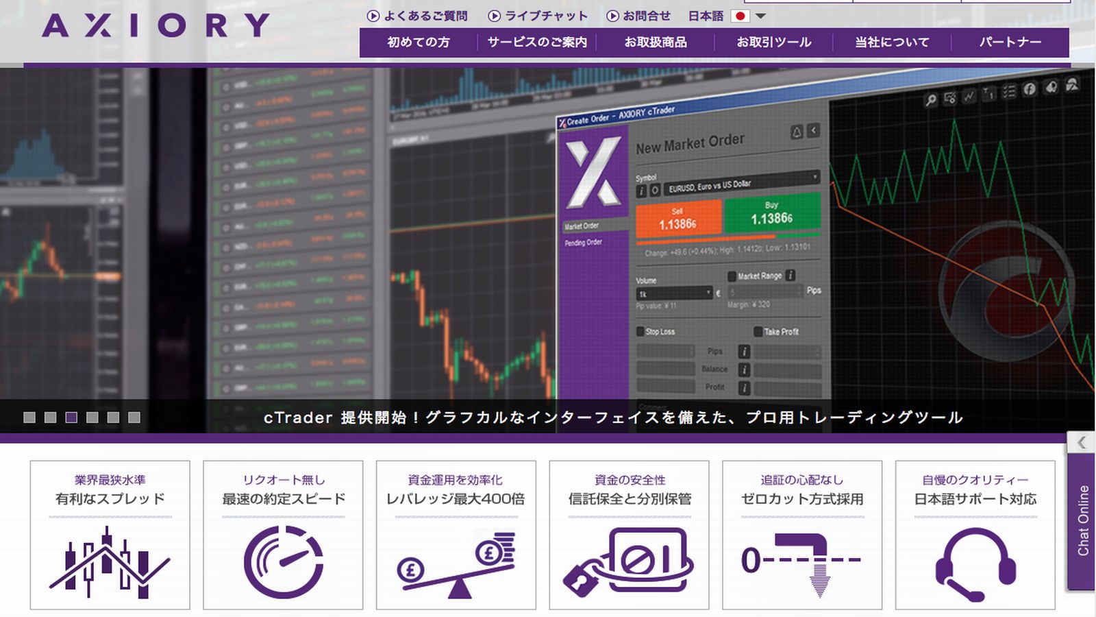 - 最高レバレッジ1:400で、他社と比較してやや控えめ